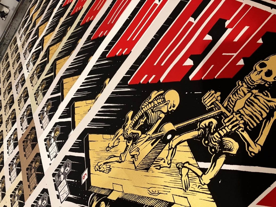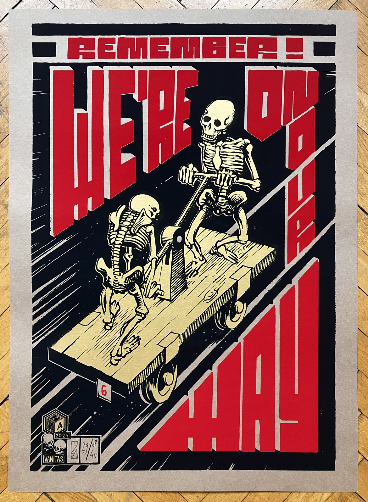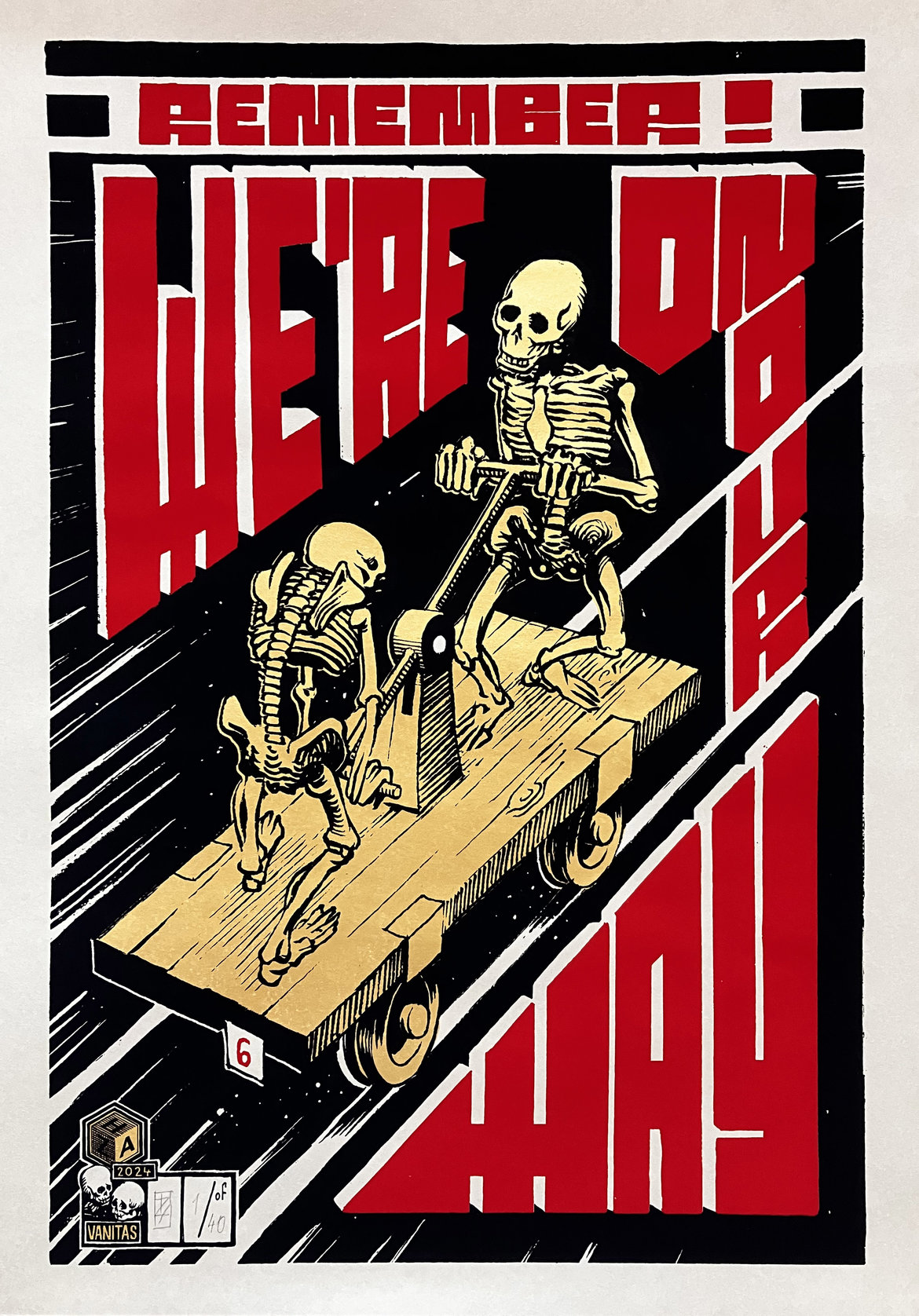 Screen print on paper, Black, Red and Gold, 50x70cm, Paper 220g