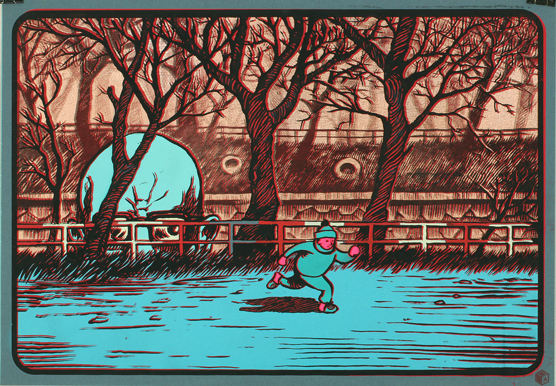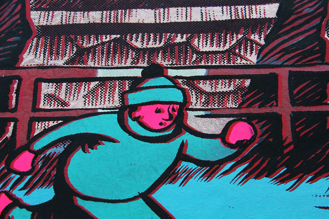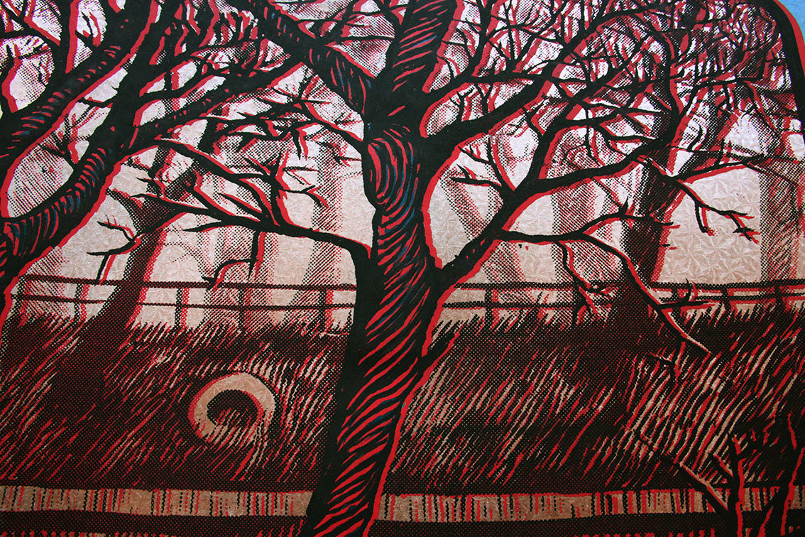 Black and red screenprint /metalic and colour stencils